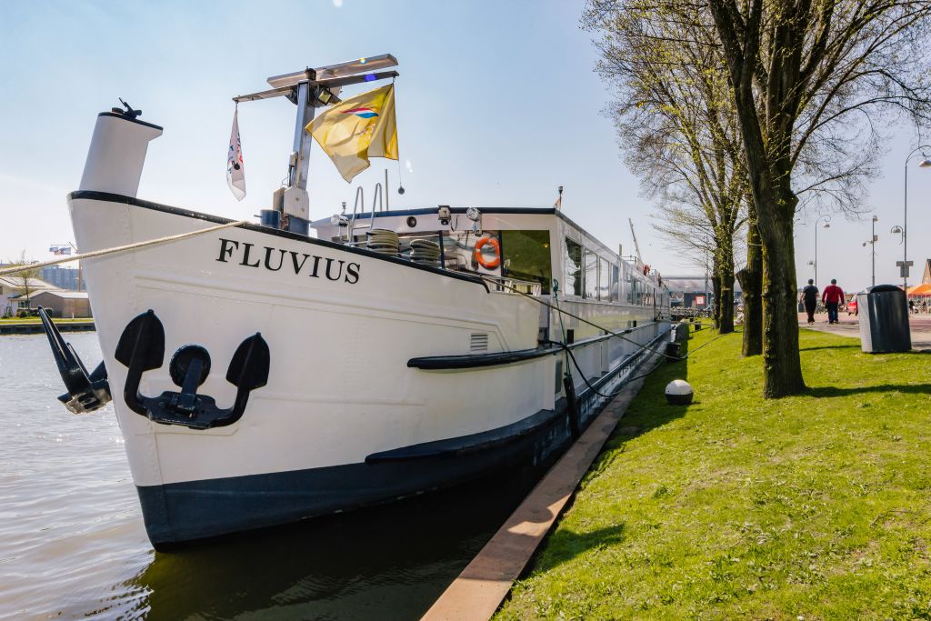 The friendly river boat Fluvius sails between Belgium and Holland. The cozy cabins and common areas make guests feel at home.