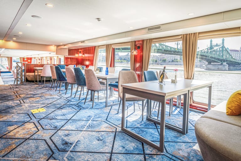On the upper deck you can also sit in the salon with large panoramic windows and enjoy a drink, while looking at the landscape passing by.
