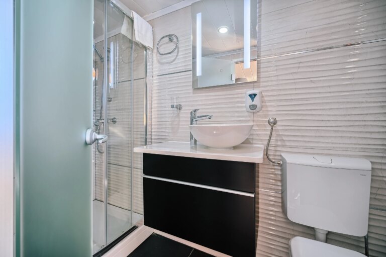 All cabins are equipped with private bathroom, air conditioning and hairdryer. Daily cabin cleaning and mid-week towel change are also provided.