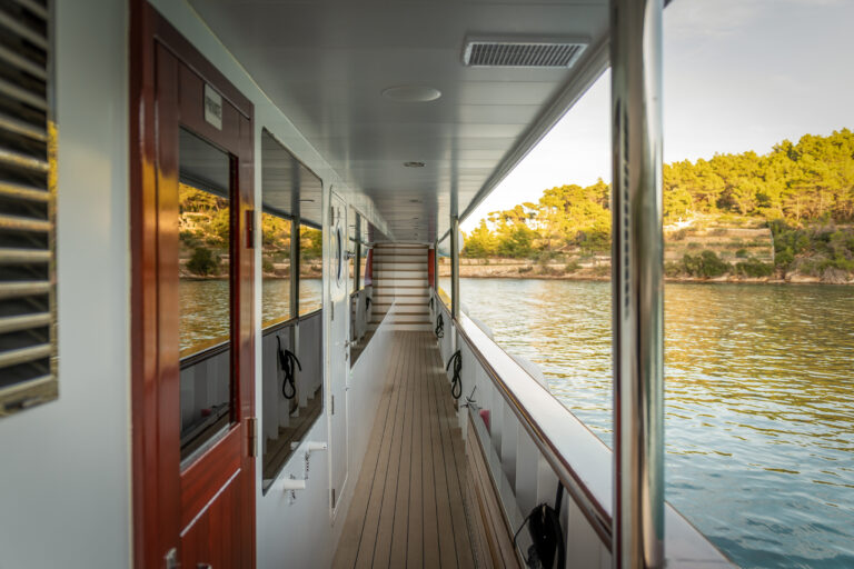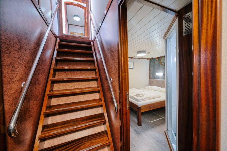 - 11 double/twin cabins on the main or upper deck with large windows that can be opened