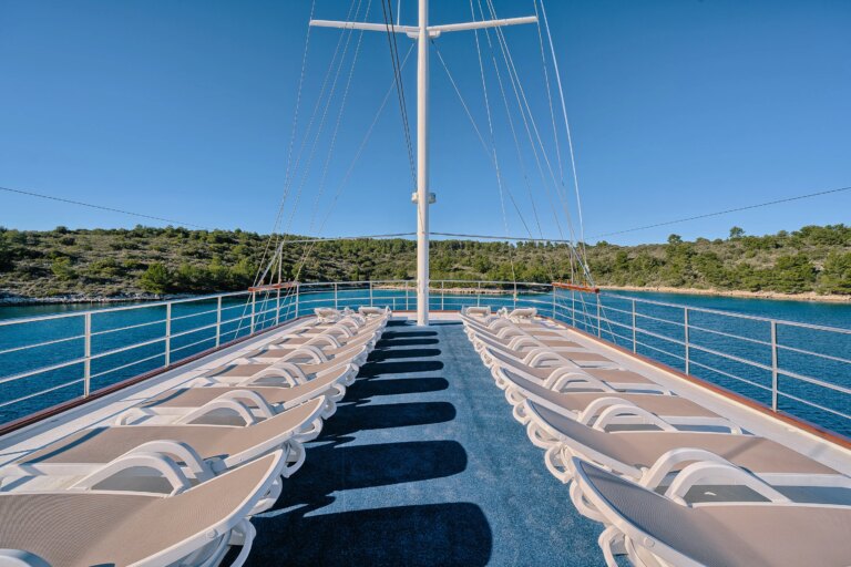 - wide sundeck equipped with deck chairs and soft loungers for relaxing moments