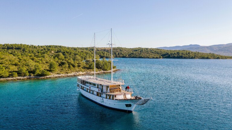Magellan is an elegant motor yacht that gently sails among the islands of southern Dalmatia. The large sun deck with comfortable deck chairs is ready to provide relaxing moments with a sea view.