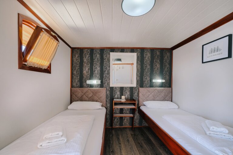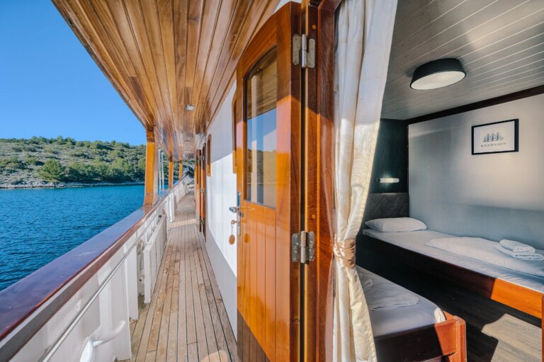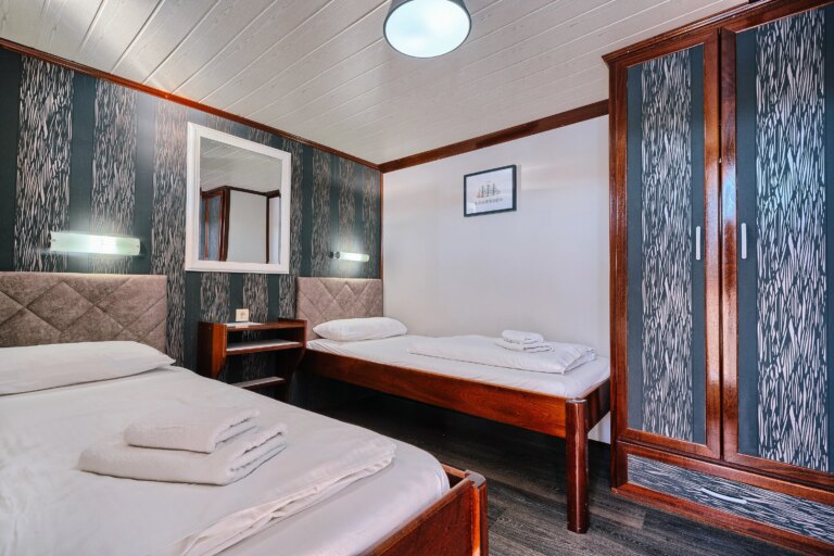 - 4 double/twin cabins on the lower deck, two with twin beds and two with double beds