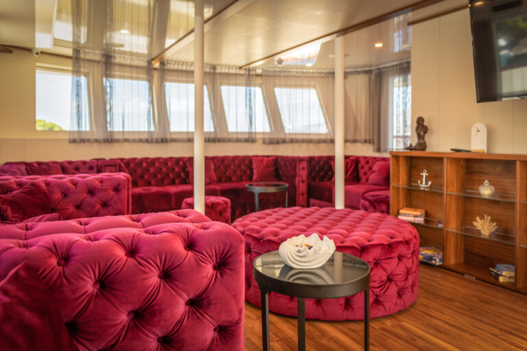 The common areas have a touch of class that lend a relaxing atmosphere, and the cabins are spacious and with attention to detail. The elegant salon is an inviting setting in which to gather to enjoy delicious dishes expertly prepared by the on-board kitchen.